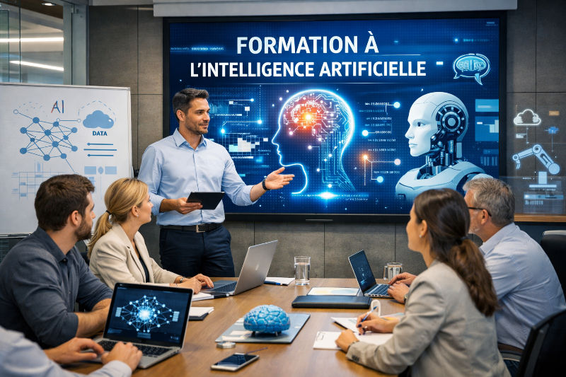 Découvrez comment l’IA transforme les entreprises : automatisation, productivité, relation client. Formations IA concrètes pour commerçants et entrepreneurs.